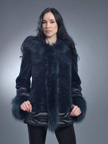 Прекрасная шубка из мутона с отделкой из меха лисы