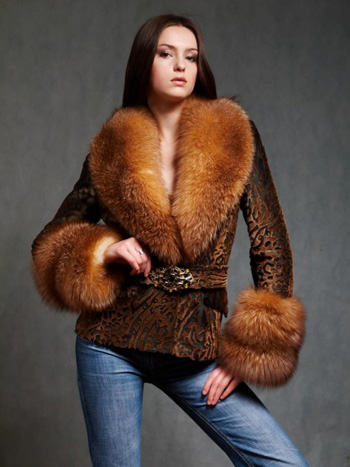 Куртка из овчины лазерной стрижки и меха песца в качестве отделки