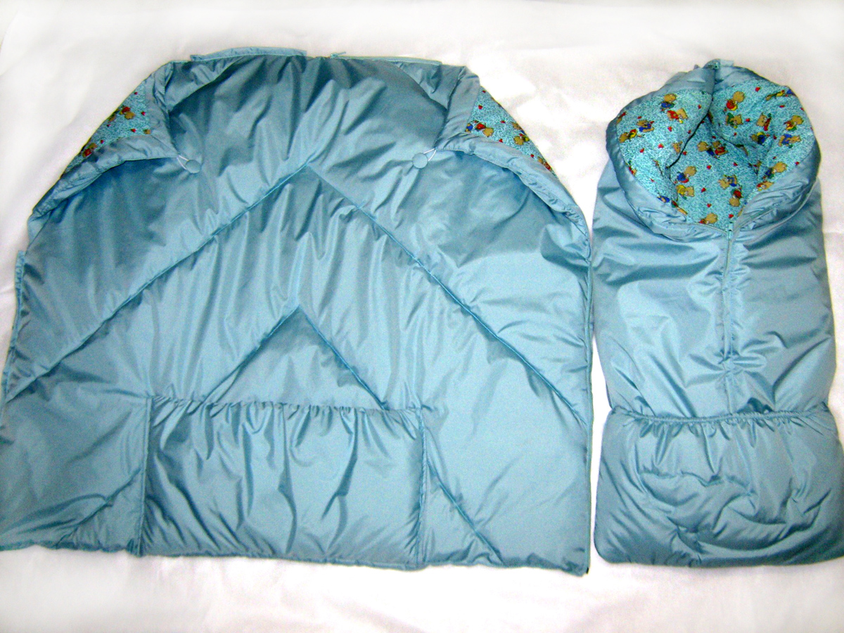 Можно использовать как одеяло для коляски или дома; как конверт для детей от рождения до года - одевая при этом ребенка на прогулку полегче... Красота... А еще оно складывается, убирается в карман и становится подушкой!